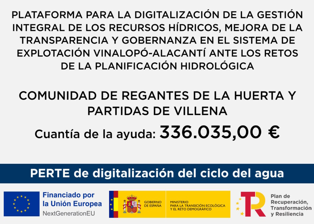 El proyecto cuenta con ayudas de la Conselleria de Agricultura, Desarrollo Rural, Emergencia Climática y Transición Ecológica, al amparo de la Orden 6/2022, de 13 de junio que aprueba las bases reguladoras para la concesión de ayudas a las Comunidades de Regantes y otras entidades de riego, en relación con la rehabilitación de balsas de riego para la mejora de sus condiciones de seguridad.
